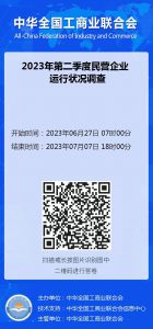 由中华全国工商业联合会主办的第2季度民营企业运行状况调查于2023年6月27日至2023年7月7日开网填报,请各会员单位积极响应,扫码填报。