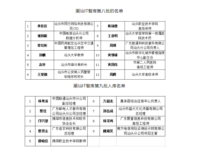 热烈欢迎潮汕IT智库第八、九批高端人才入库!