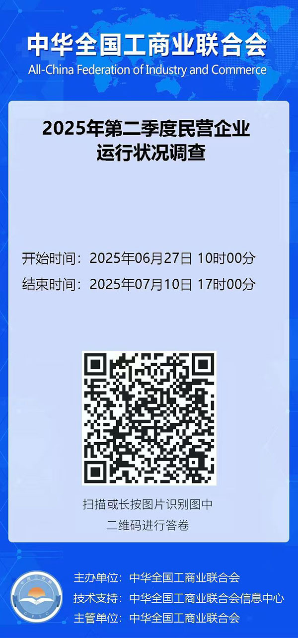 2025年第2季度民营企业运行状况调查已经开始,填报时间为:2025年6月27日至2025年7月10日17:00止。