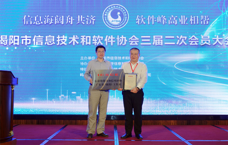 国家信息化能力和信用评价中心向我会授予“ICSCE信息化能力和信用评价广东省(揭阳)工作站”牌匾及证书。